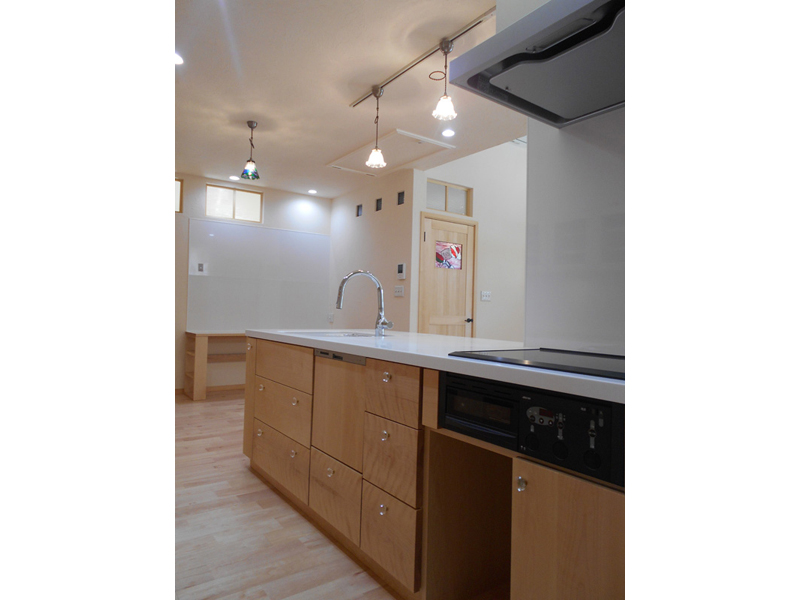 シンプルをベースに。ナチュラル感溢れるお家 杵島郡江北町 S様邸 シエスタシリーズ サクラ材の床材 天板人工大理石・キャビネット、サクラ材 シンプルナチュラルをテーマにお造りしたS様邸。 外壁・内壁はあたたかみのあるホワイト色の塗り壁で仕上がりました。 リビングドアのステンドグラスはお子様が描かれた果物のイラストを忠実に表現しました♪リビングのアクセントにピッタリ☆ 一覧に戻る NEXT
